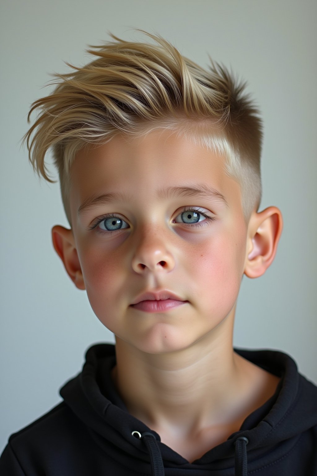 Der Low Taper Fade mit blonden Highlights verleiht jedem Jungen einen frischen und zeitgemäßen Look, der sowohl in der Schule als auch bei besonderen Anlässen für Aufsehen sorgt. Die sanfte Abstufung an den Seiten geht nahtlos in längeres Haar am Oberkopf über, wo die blonden Highlights für zusätzliche Dimension und einen sonnenverwöhnten Effekt sorgen. Besonders vorteilhaft ist dieser Stil für Jungen, die einen pflegeleichten, aber dennoch ausdrucksstarken Haarschnitt suchen, der sich vielseitig stylen lässt. Die Kombination aus präzisem Low Taper Fade und strategisch platzierten blonden Akzenten schafft einen modernen Look, der sowohl Eltern als auch modebewusste Jungs begeistert.