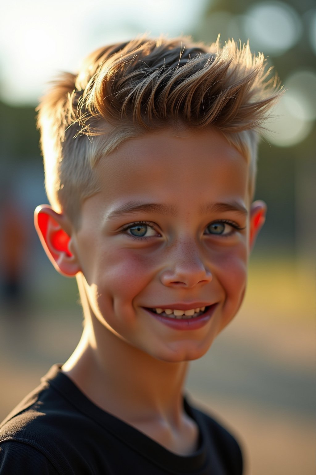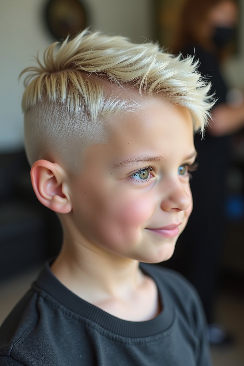Der Low Taper Fade mit goldblonden Strähnen ist die perfekte Frisurenwahl für aktive Kinder, die sowohl stilvoll als auch pflegeleicht aussehen möchten. Die goldblonden Strähnen bringen einen spielerischen Touch in den Look und lassen das Haar im Sonnenlicht besonders schön glänzen. Durch den kurzen, präzisen Schnitt bleibt die Frisur auch bei sportlichen Aktivitäten und wildem Toben in Form und benötigt wenig Styling am Morgen. Die Kombination aus praktischem Taper Fade und den auffälligen blonden Akzenten sorgt für einen coolen, selbstbewussten Auftritt auf dem Spielplatz, beim Sport oder in der Schule.