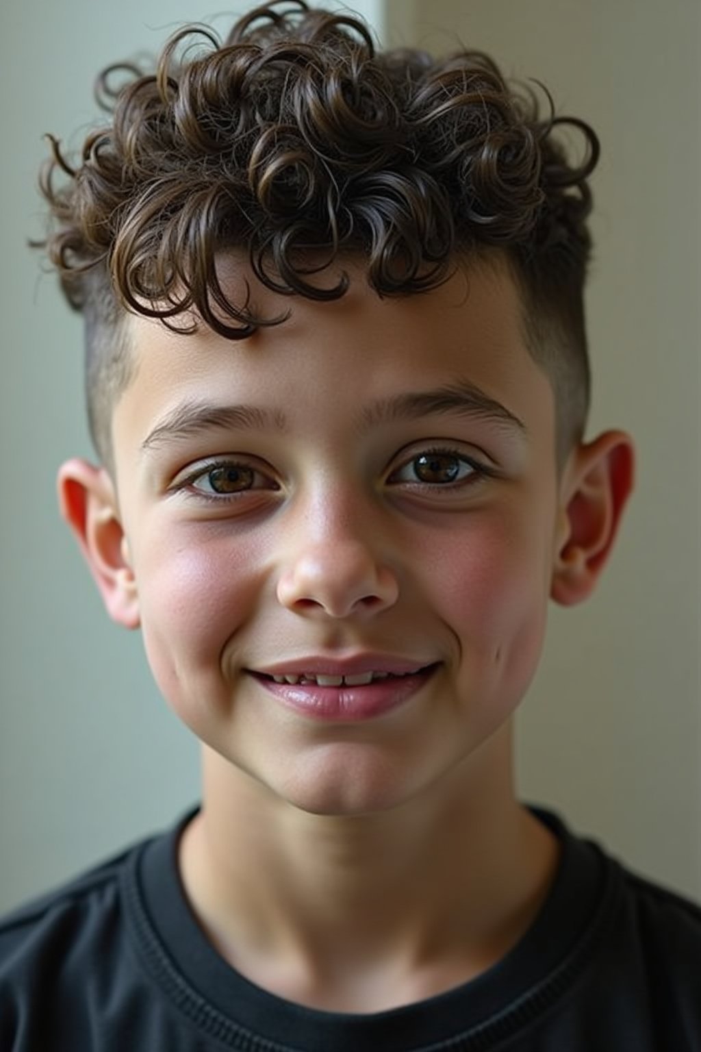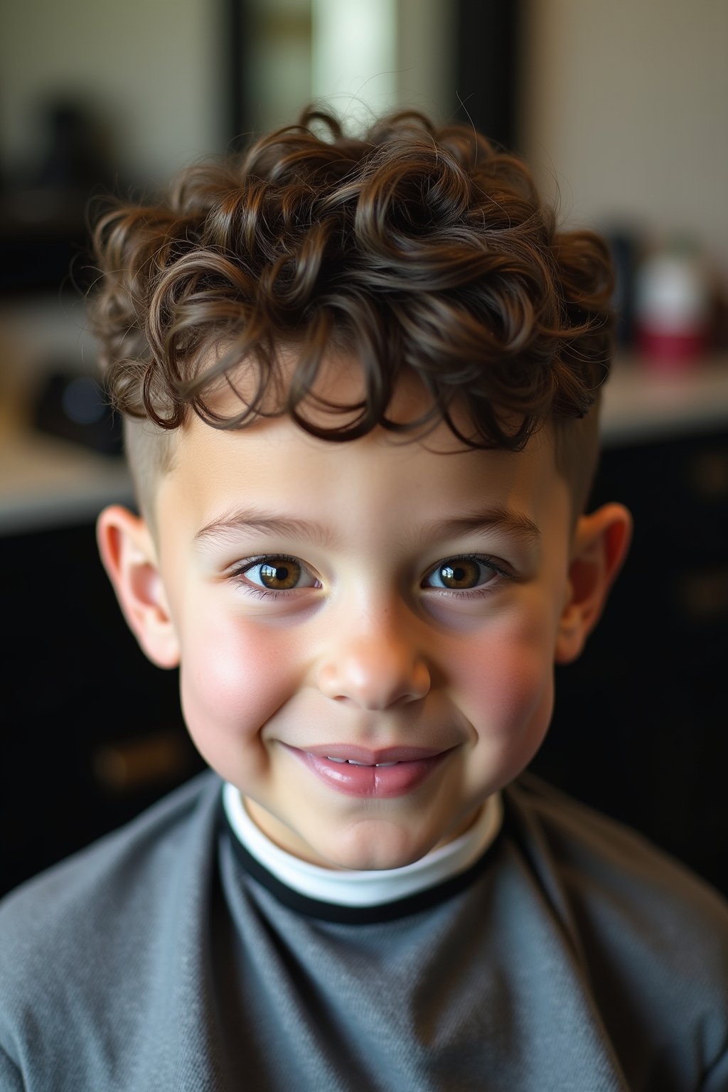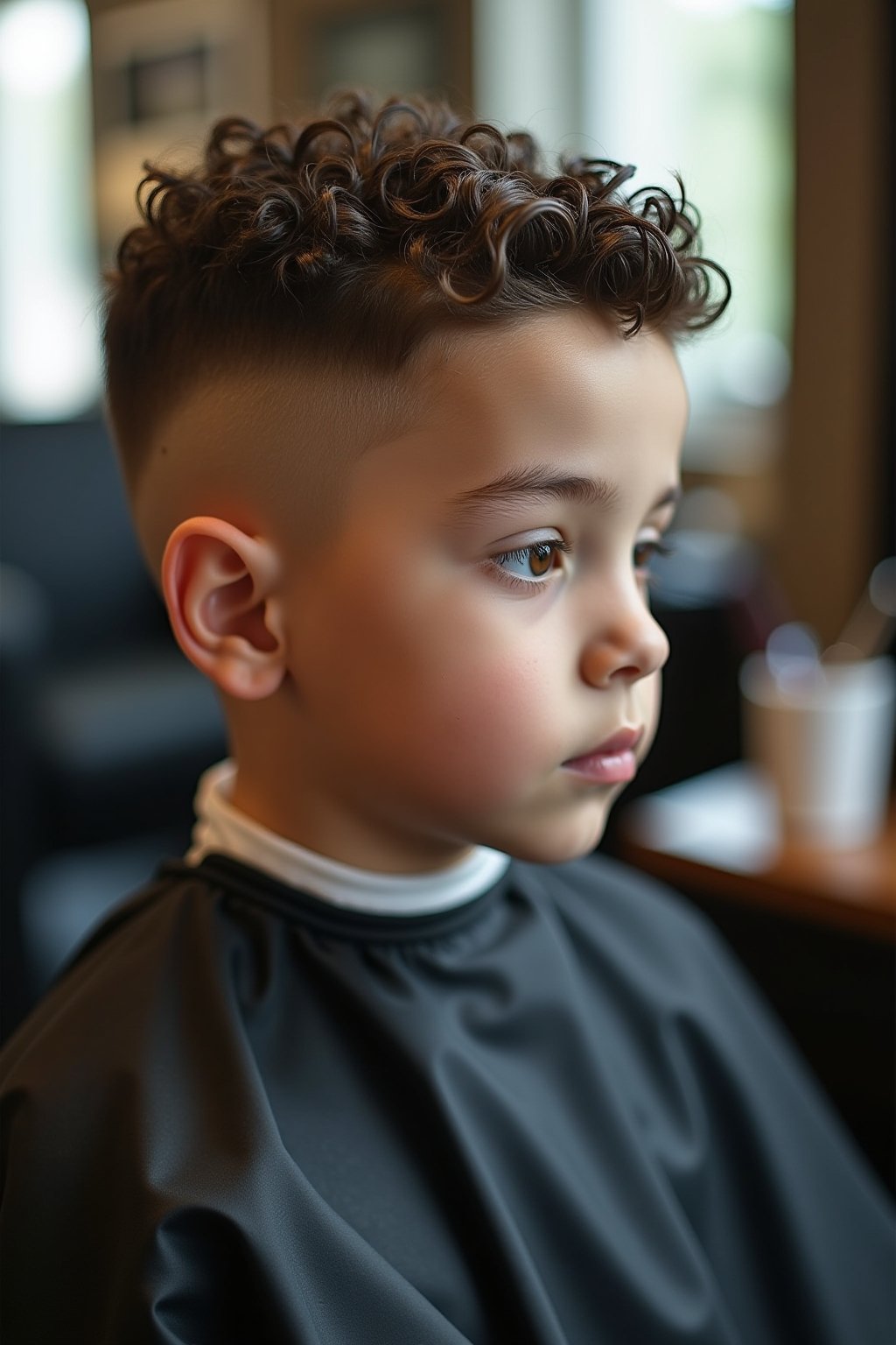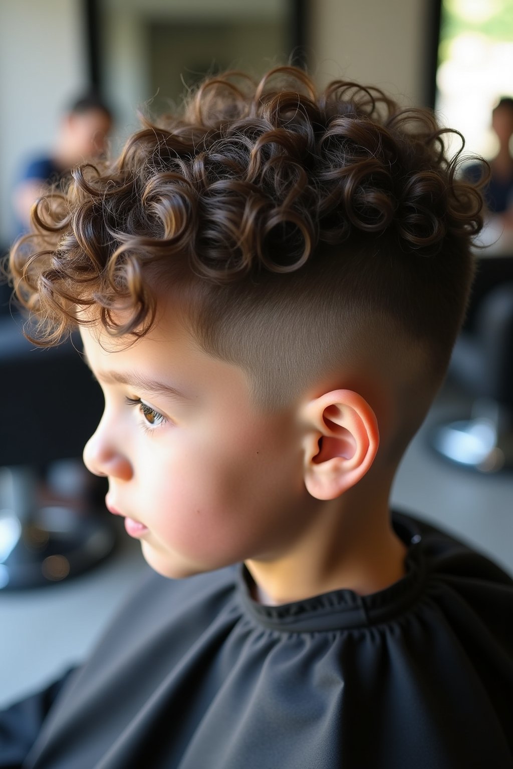 - Kombination aus volumiösen Locken und präzisem Low Taper Fade für selbstbewussten Kinderauftritt