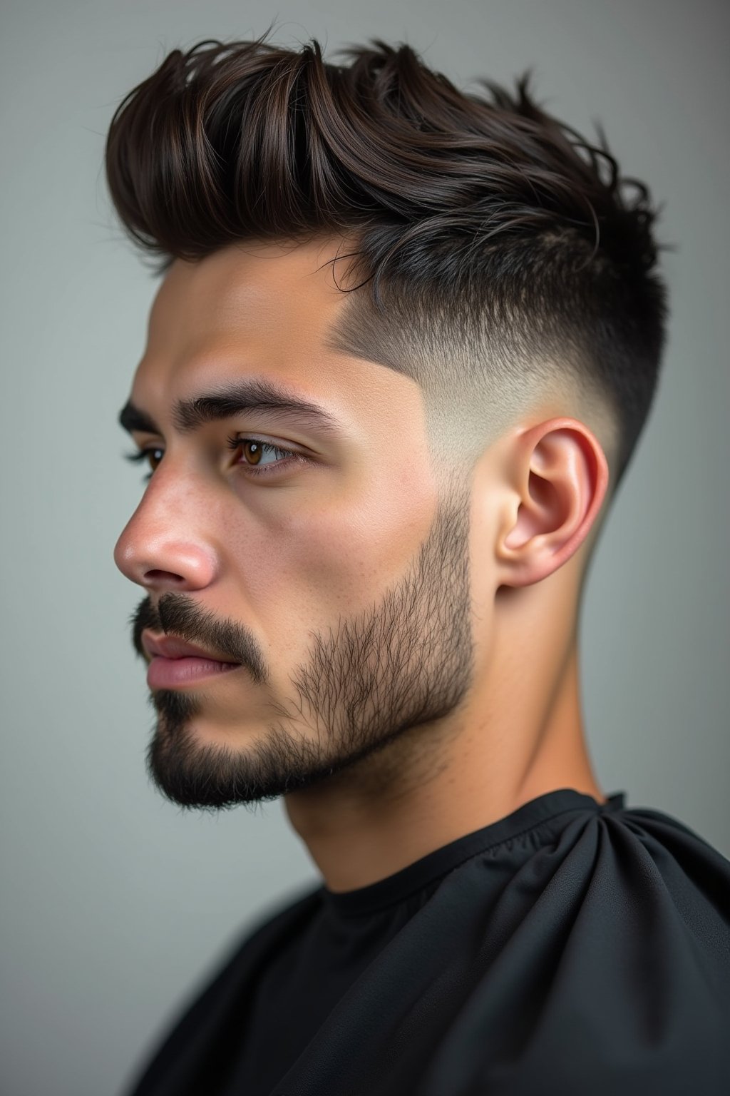 Mit einem Mid Taper Fade als Basis bieten sich für glattes Haar zahlreiche Styling-Optionen am Oberkopf. Ein klassischer Seitenscheitel erzeugt einen eleganten, zeitlosen Look, während ein texturierter Quiff oder Pompadour für mehr Höhe und modernen Flair sorgt. Kurze, nach vorne gestylte Fransen passen perfekt zum urbanen Streetstyle. Für Business-Umgebungen eignet sich ein sauberer Comb Over, der Professionalität ausstrahlt. Bei mittellangem Deckhaar funktionieren Messy Styles hervorragend, die mit Texture-Spray und leichten Pastenformulierungen kreiert werden. Wer es minimalistisch mag, kann auch einen kurzen Crop mit strukturierter Textur wählen. Die Vielseitigkeit des Mid Taper Fade liegt genau darin, dass er sowohl zu glatteren, polierten Styles als auch zu bewegten, voluminösen Frisuren harmonisch passt.