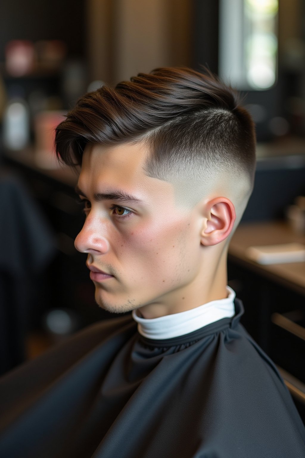 Der Mid Taper Fade und der klassische Undercut unterscheiden sich primär durch ihre Übergänge und Proportionen. Beim Mid Taper Fade erleben Sie einen graduellen, fließenden Übergang von kurz zu lang, der etwa in der mittleren Kopfhöhe beginnt. Die Haarlänge nimmt sanft und stufenweise zu. Der Undercut hingegen zeichnet sich durch einen abrupten, deutlichen Kontrast aus – hier werden die Seiten und der Hinterkopf einheitlich kurz geschoren, während das Deckhaar in voller Länge bleibt. Bei glatten Haartypen wirkt der Taper Fade natürlicher und vielseitiger stylingbar, während der Undercut dramatischer und kantiger erscheint. Für Männer mit feinem Haar bietet der Mid Taper oft eine schmeichelhaftere Silhouette, da er mehr Volumen und Struktur schafft als der scharf abgegrenzte Undercut.