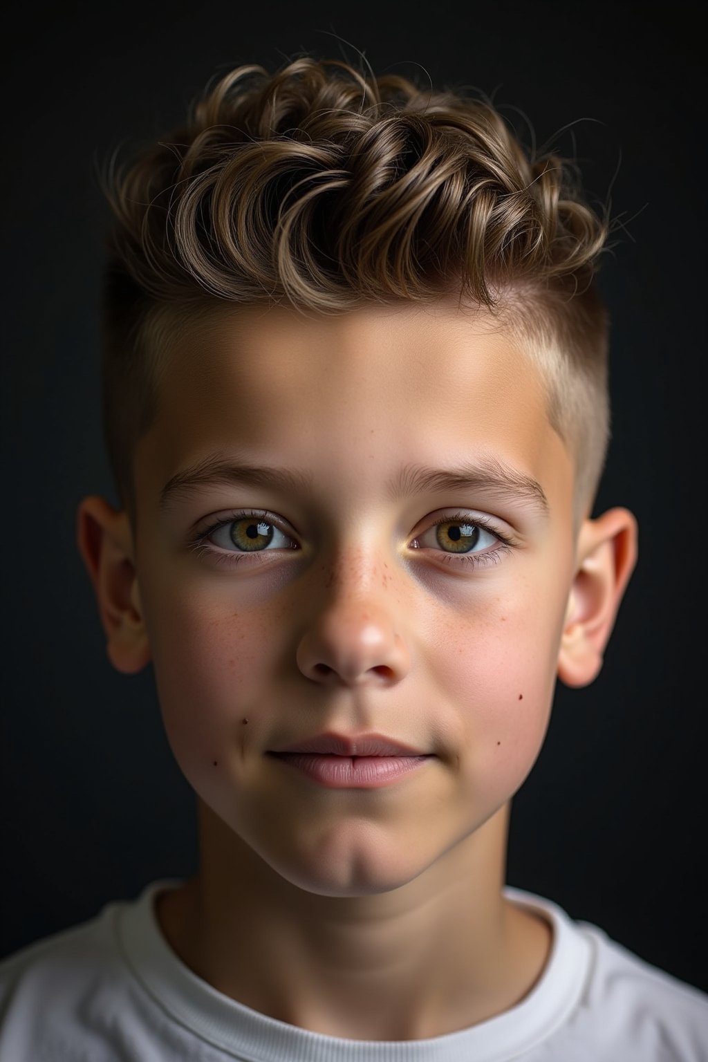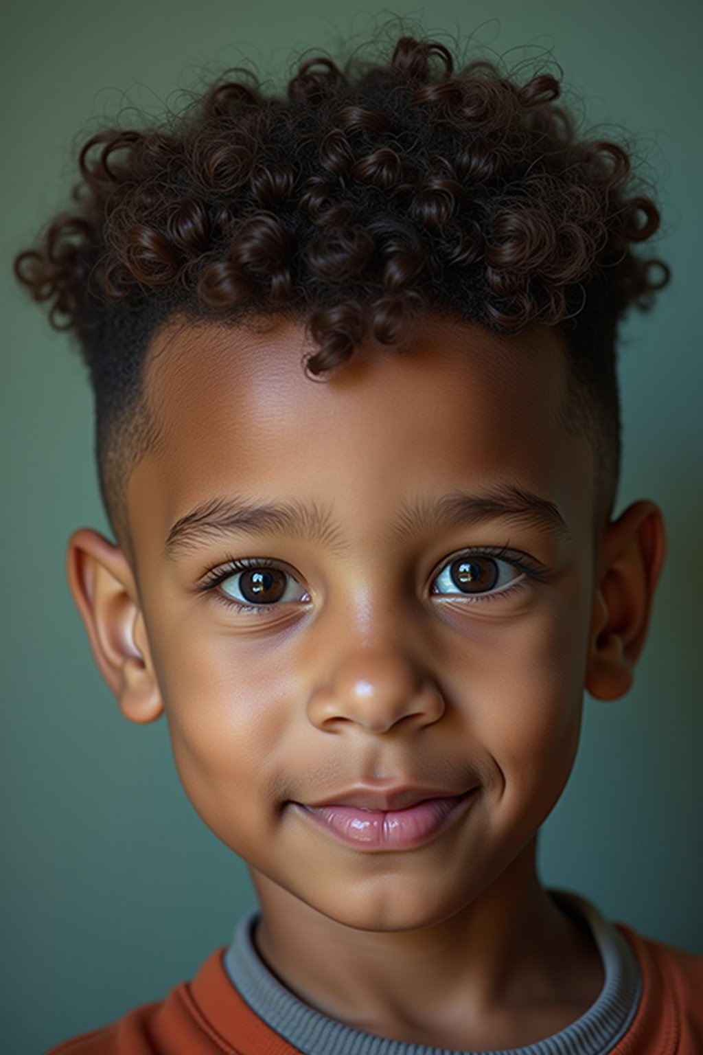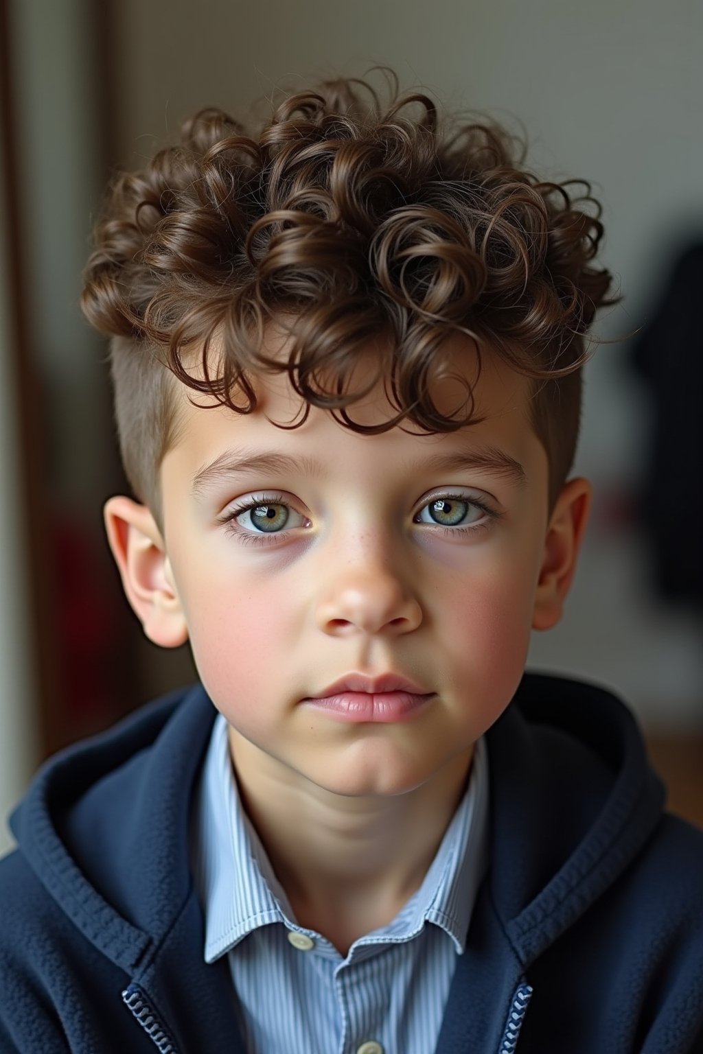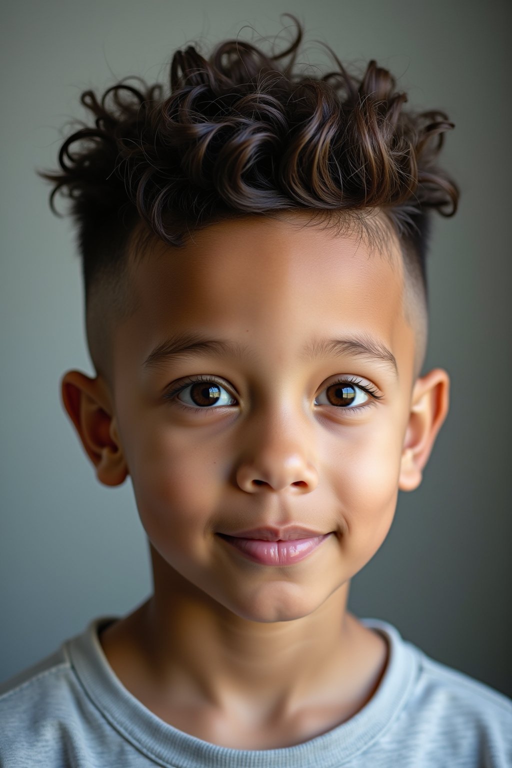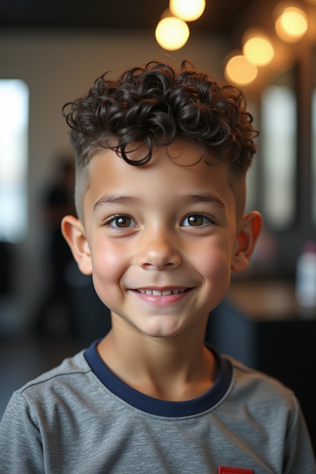 Taper Fade für Kinder: Kombiniert kurze, pflegeleichte Seiten mit ausdrucksstarken Locken oben für einen stylischen, aber kindgerechten Look.